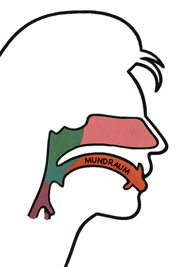 Wenn dein Gaumensegel oben ist, liegt es an der Rachenwand an und verschließt somit den Weg zur Nase komplett. Nasale Laute wie m, n oder ng sind dadurch nicht mehr möglich. Dafür kannst du jetzt perfekt orale Laute wie a, e, i, o, u formen.