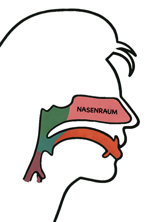 Der Nasenraum gehört zu deinem Ansatzrohr, also zu den Räumen oberhalb der Stimmlippen, in denen dein Klang geformt wird. Auch wenn die Luft beim Singen meist durch den Mund strömt, kann der geöffnete oder geschlossene Nasenraum die Klangfarbe deiner Stimme spürbar beeinflussen.